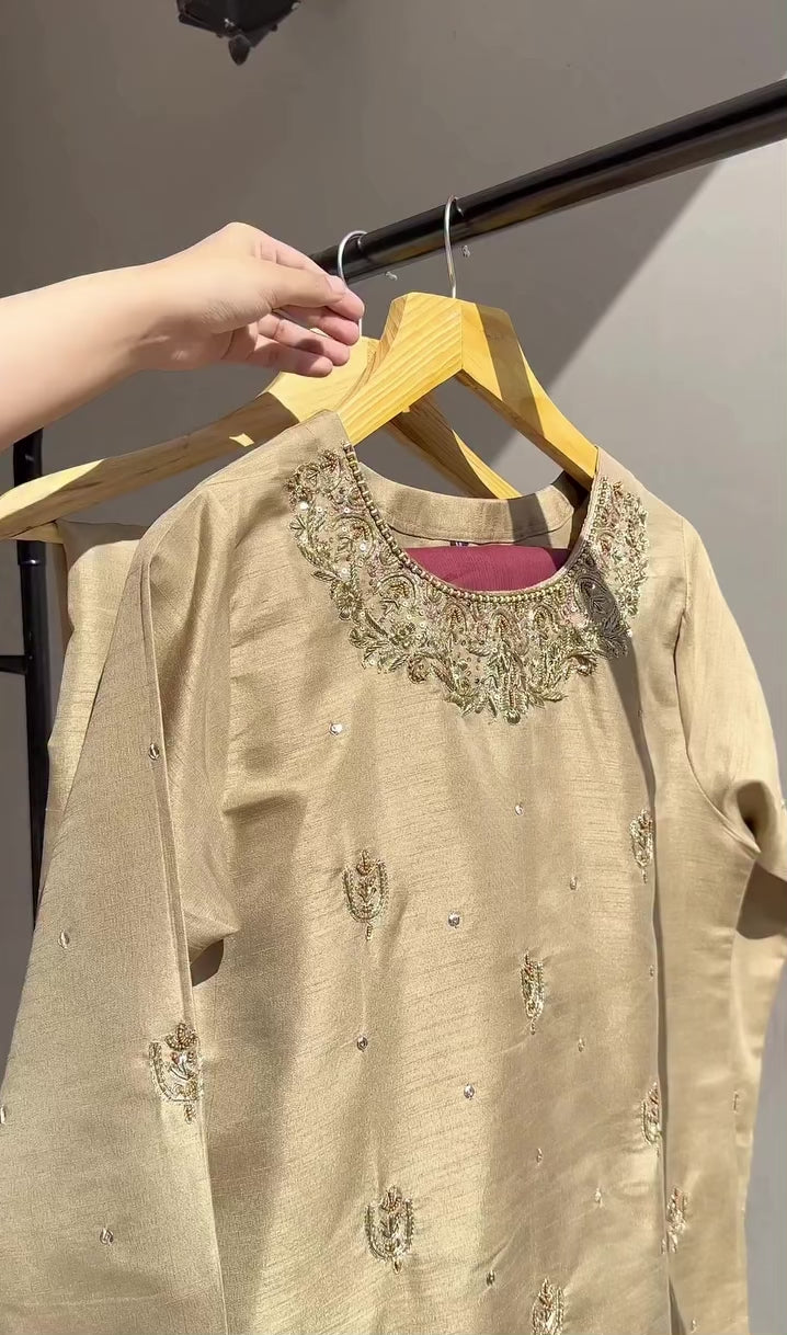 your style with this elegant 3-piece ensemble. The Premium dress, offering a perfect blend of sophistication and comfort. Paired with a Smart- Shalwar, this set ensures a flattering and sleek silhouette. The Dupatta adds a touch of grace and elegance, completing the look with delicate lace accents.
